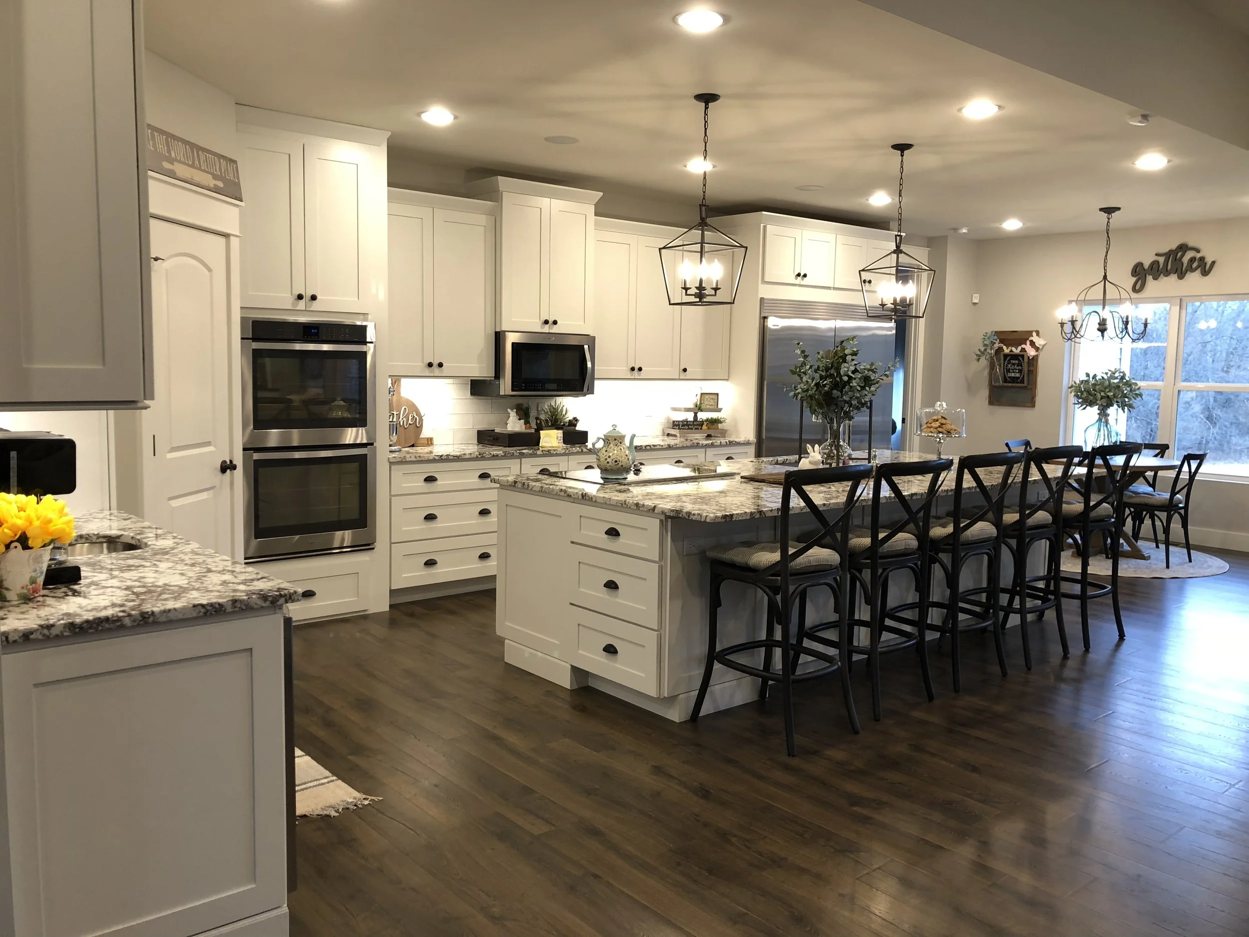 Depending on your specific goals we'll design a kitchen that will function best for your family and your needs. My designs usually include multiple refrigerator / freezer options because the standard combination just doesn't provide enough room for most families needs. I've also designed desk spaces within the kitchen area to accommodate lap tops and printers, that way the whole family can be together during homework, etc. The possibilities are limitless and because we can supply the cabinets - it allows a HUGE cost savings to our clients.